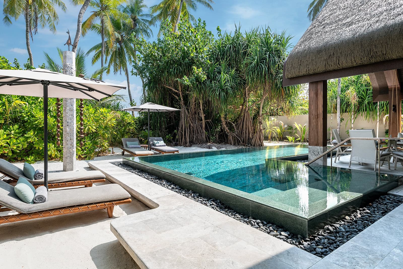 Beach Pool Villa is your perfect island abode for your Maldivian Escape. The villa features an inviting pool and is surrounded by captivating vistas. Located on the sunset side of the island, this villa's chic design harmonises with its surroundings. The tropical indoor-outdoor bathroom, complete with a spacious standalone bathtub, offers a serene sanctuary. Plus, direct access to the island's most exquisite beach with sunbeds awaits your discovery.