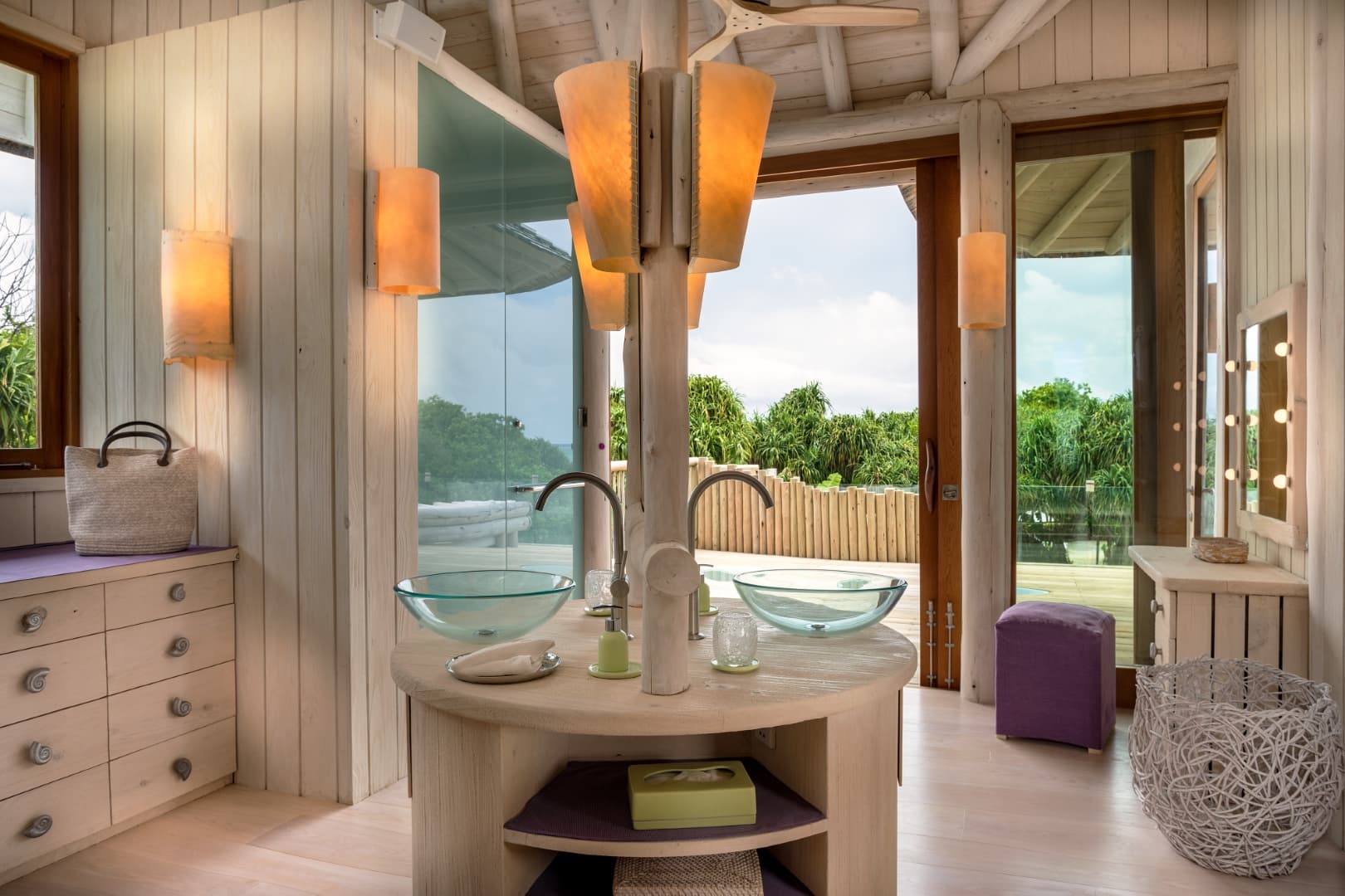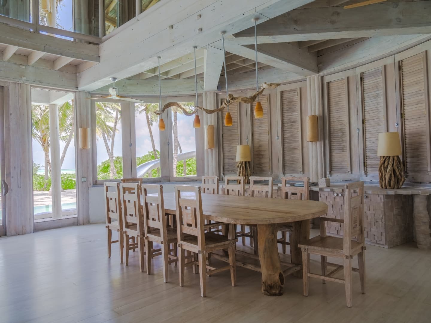 The Four Bedroom Island Reserve suite is the perfect combination of luxury and customisation. With a wealth of spacious indoor and outdoor living areas, this beachfront suite offers something for everyone. Enjoy a steam bath, sauna, dining room, TV lounge, private pool, kitchen, and wine vault on the first floor. The second floor features 3 additional bedrooms with bathrooms and dressing rooms, as well as a private gym. For the kids, the pool has a thrilling water slide and a children's pool.