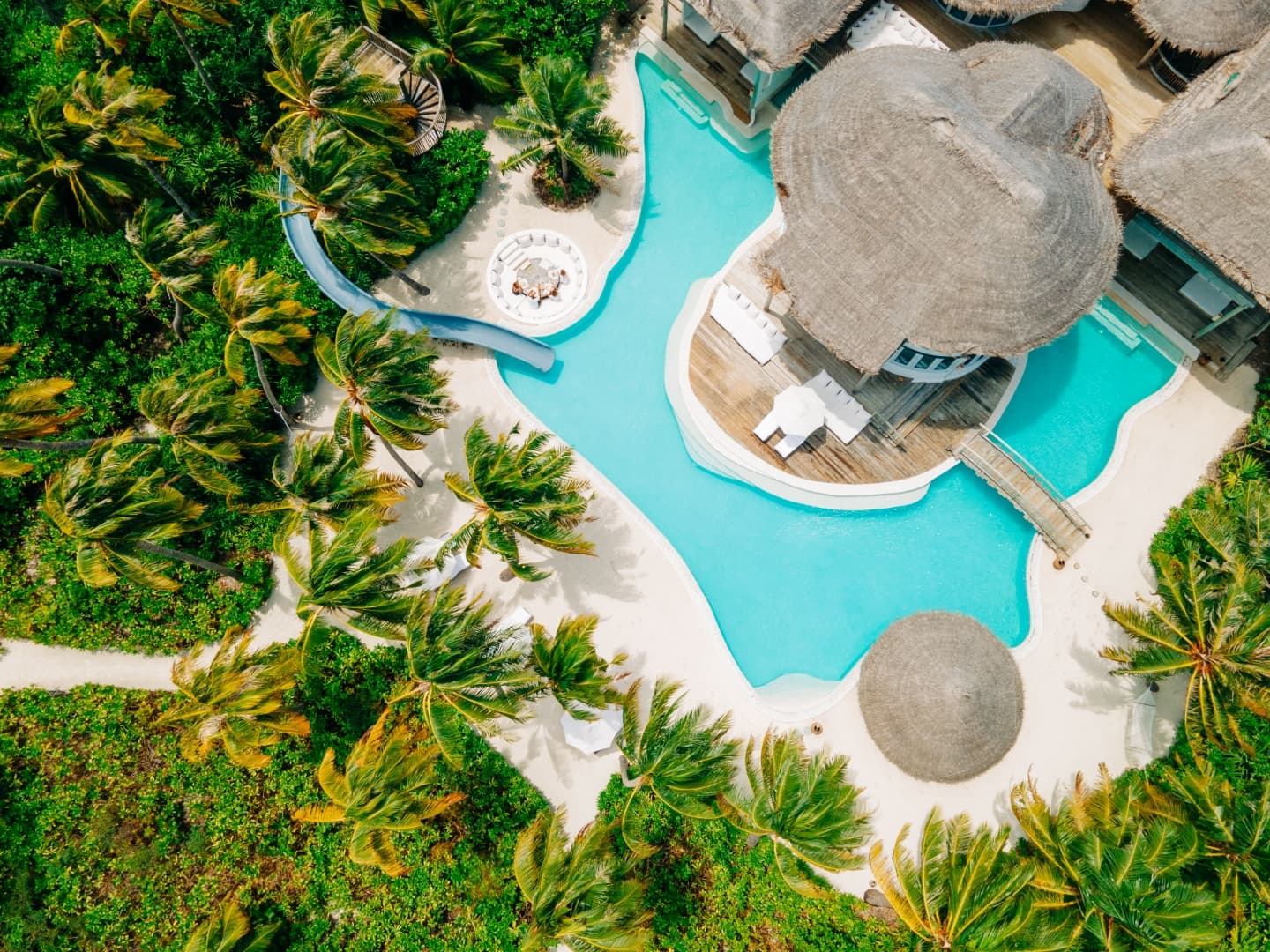 This luxurious two-storey 2-Bedroom Island Retreat with Slide offers 446 sqm of beachfront living, complete with its own freshwater pool and plenty of space for a family of six to relax and unwind. Enjoy the ultimate indulgence with its own private slide!