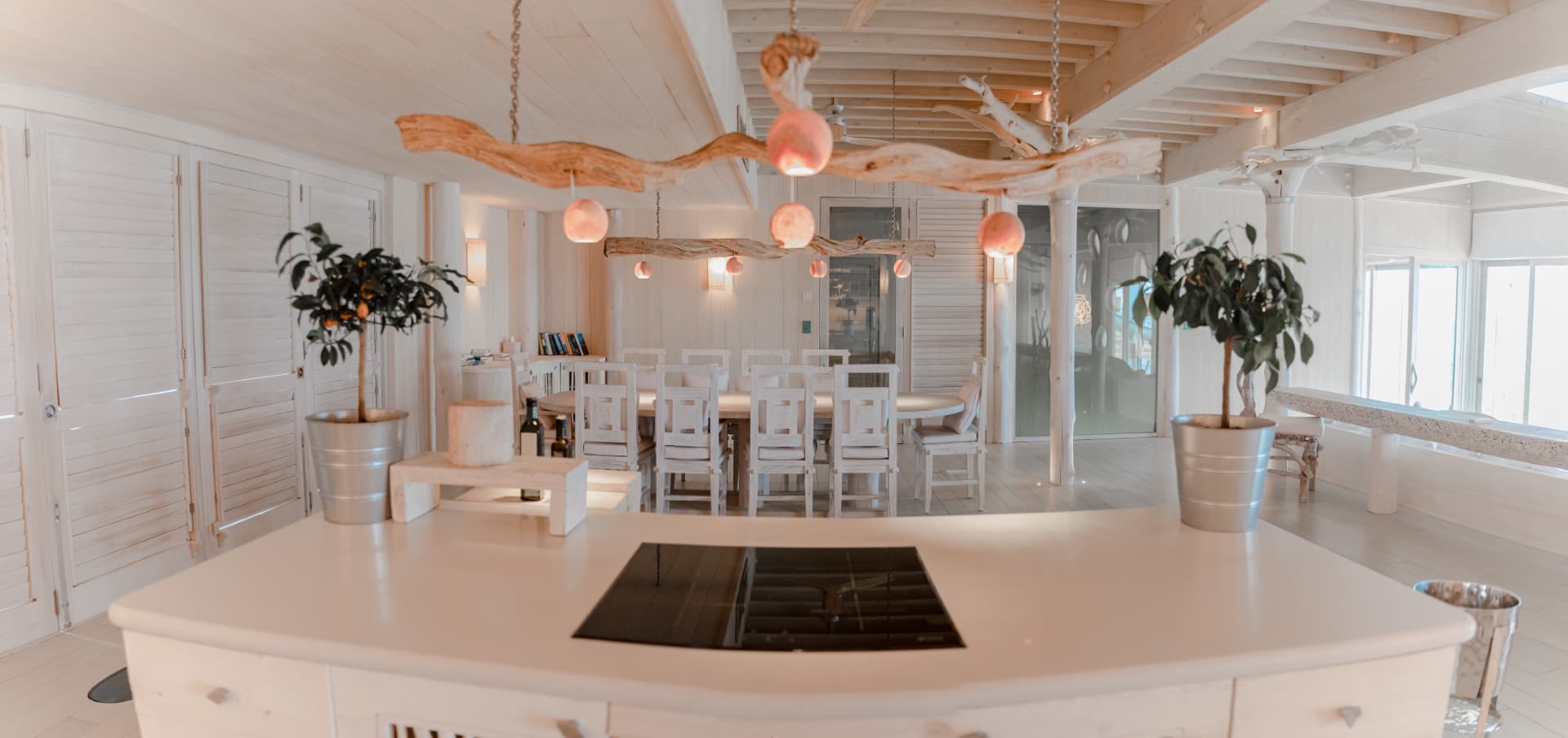 Enjoy the warmth of the sun or escape to the cool shade at two outdoor, sunken seating areas, one even has a roof! Admire the stunning blue views from the outdoor deck, dine in your sala, and then take a dip in the lagoon. Unwind by the pool on sun loungers or catamaran nets, and take a thrilling ride down the water slide.