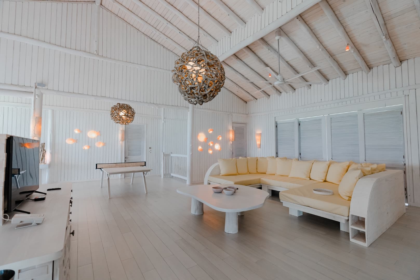 This 4 Bedroom Water Retreat with Slide offers luxurious over-water living at its finest, with 1,291 square metres of uninterrupted views in every direction. This villa includes four private bedrooms and an additional bedroom for children or adults. The villa also features a study, personal gym, TV lounge, minibar, outdoor shower and bath with private access to the lagoon, pantry and wine vault. Enjoy an unrivalled experience of over-water living with all the luxurious amenities this villa has to offer.