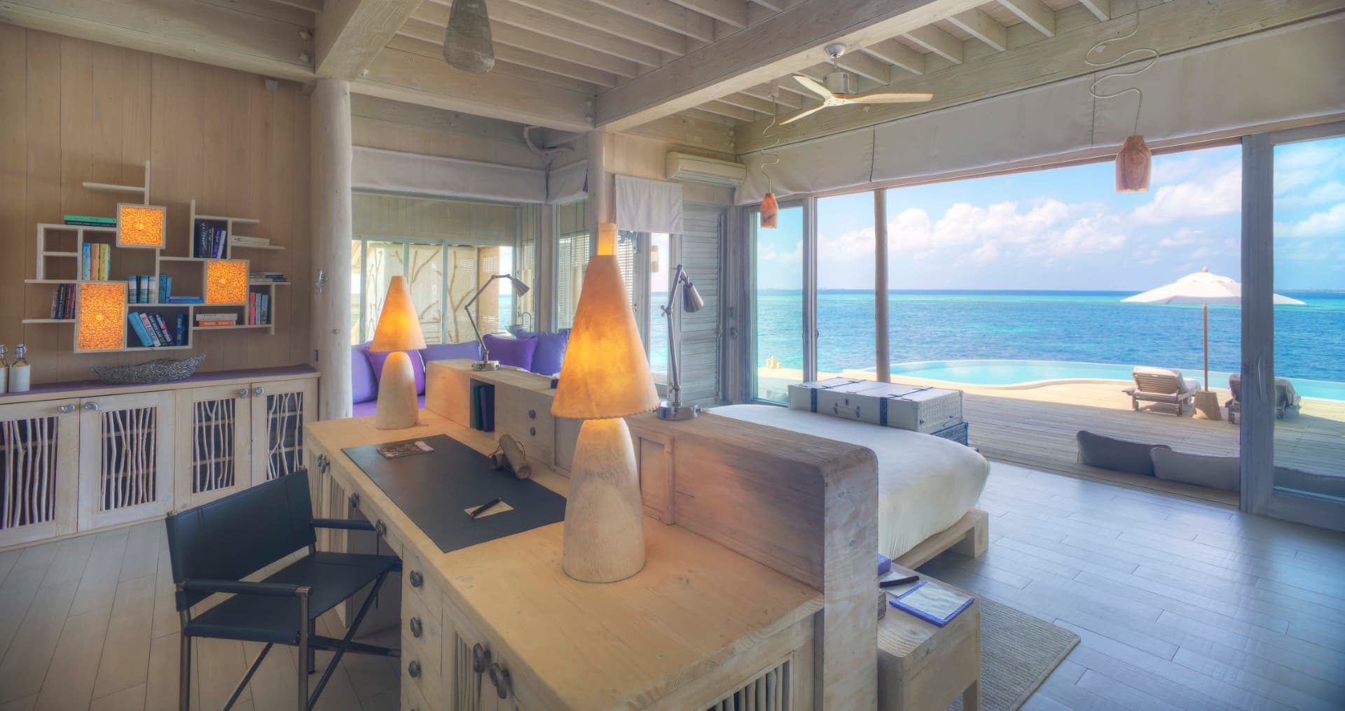 The Four Bedroom Island Reserve suite is the perfect combination of luxury and customisation. With a wealth of spacious indoor and outdoor living areas, this beachfront suite offers something for everyone. Enjoy a steam bath, sauna, dining room, TV lounge, private pool, kitchen, and wine vault on the first floor. The second floor features 3 additional bedrooms with bathrooms and dressing rooms, as well as a private gym. For the kids, the pool has a thrilling water slide and a children's pool.