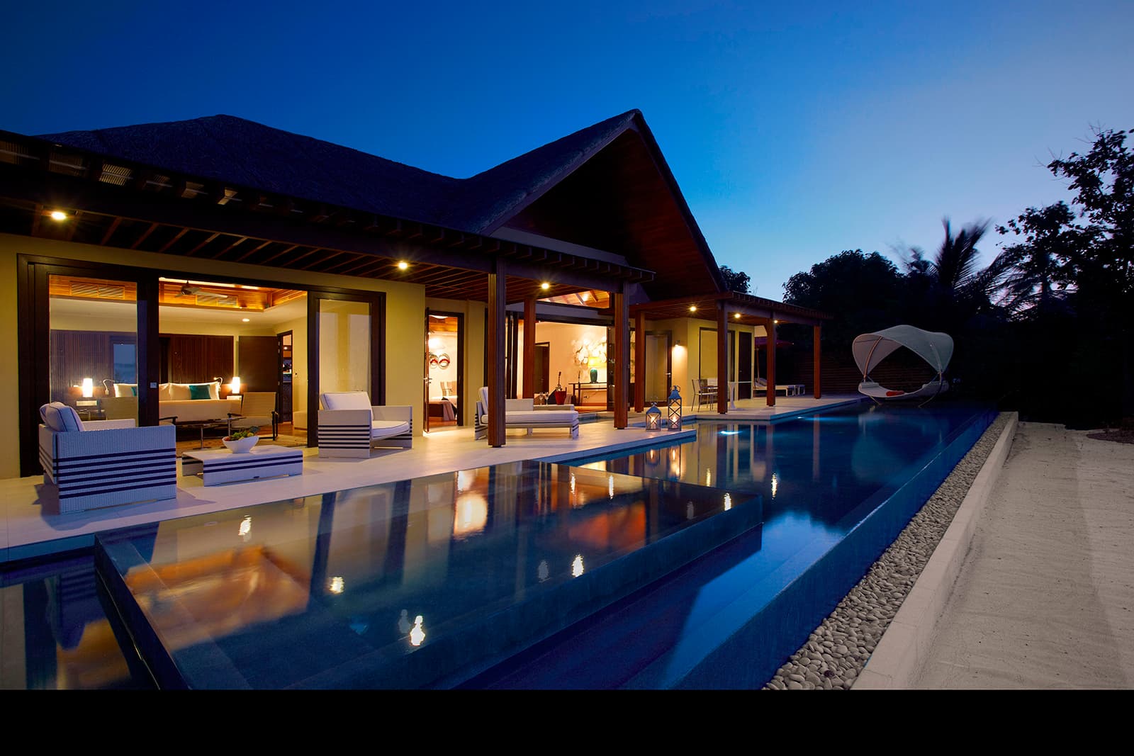 The Two Bedroom Beachfront Pool Residence is the perfect tropical paradise for small families. With direct access to a beautiful stretch of beach and plenty of outdoor and indoor living space, it's a sanctuary for families. The master bedroom is complete with a king-sized bed, an en-suite bathroom with an oversized bathtub and an outdoor rain shower while the second bedroom has two twin beds. You can lounge on the terrace or take a refreshing swim in the pool for the perfect afternoon.