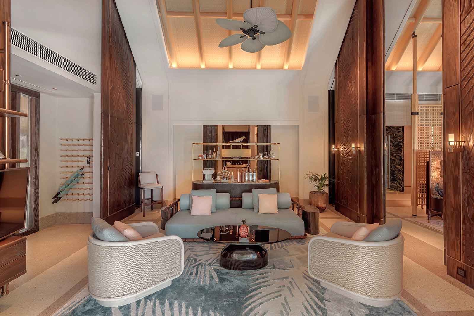 The Two Bedroom Beach Pool Villa presents the perfect vacation home for families. The villa offers the best of both worlds with a private pool and direct access to the beach. Kids can splash in the pool or run along the beach, while parents sunbathe on the deck or unwind indoors, enjoying views of the serene surroundings through floor-to-ceiling glass windows. With a pantry stocked with healthy treats, you can refuel throughout the day, making every moment a delightful experience.